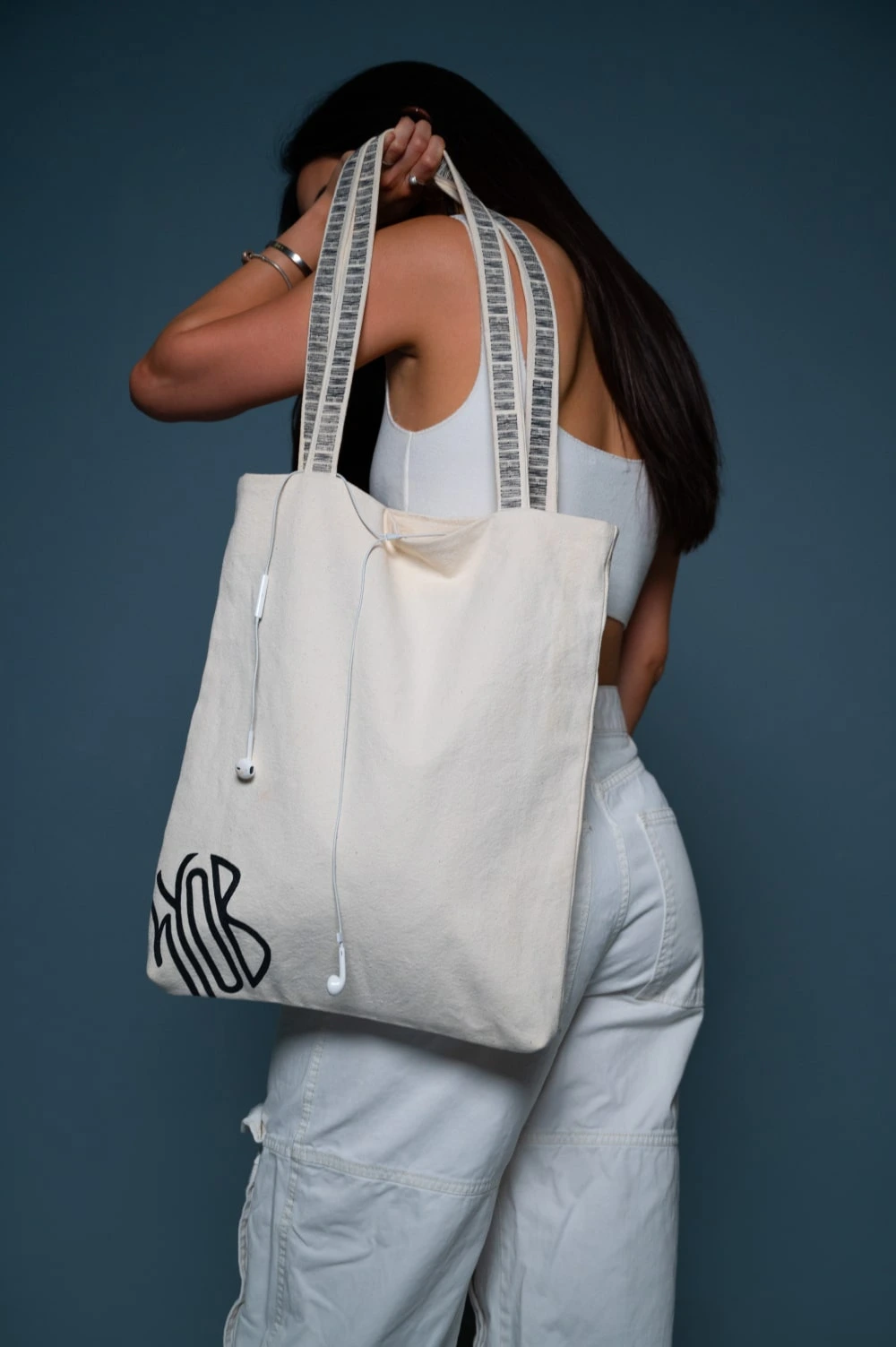 Meet our modern canvas bag design, a statement piece that embodies contemporary style and meaningful messaging. This canvas bag seamlessly marries fashion and purpose, making it a standout accessory for any occasion.Our canvas bag boasts a modern aesthetic that captures attention instantly. The focal point is a striking and sizable logo located prominently in the lower corner. The imprinted straps carry a powerful message: “Mind Your Own Business, this expression encapsulates the core of our project – advocating for self-awareness, individuality, and the profound cause-and-effect impact of our choices.