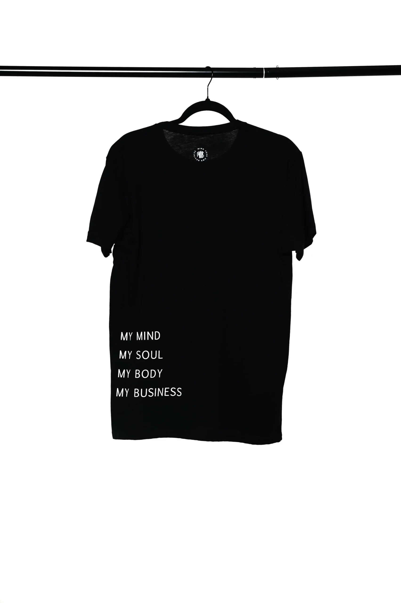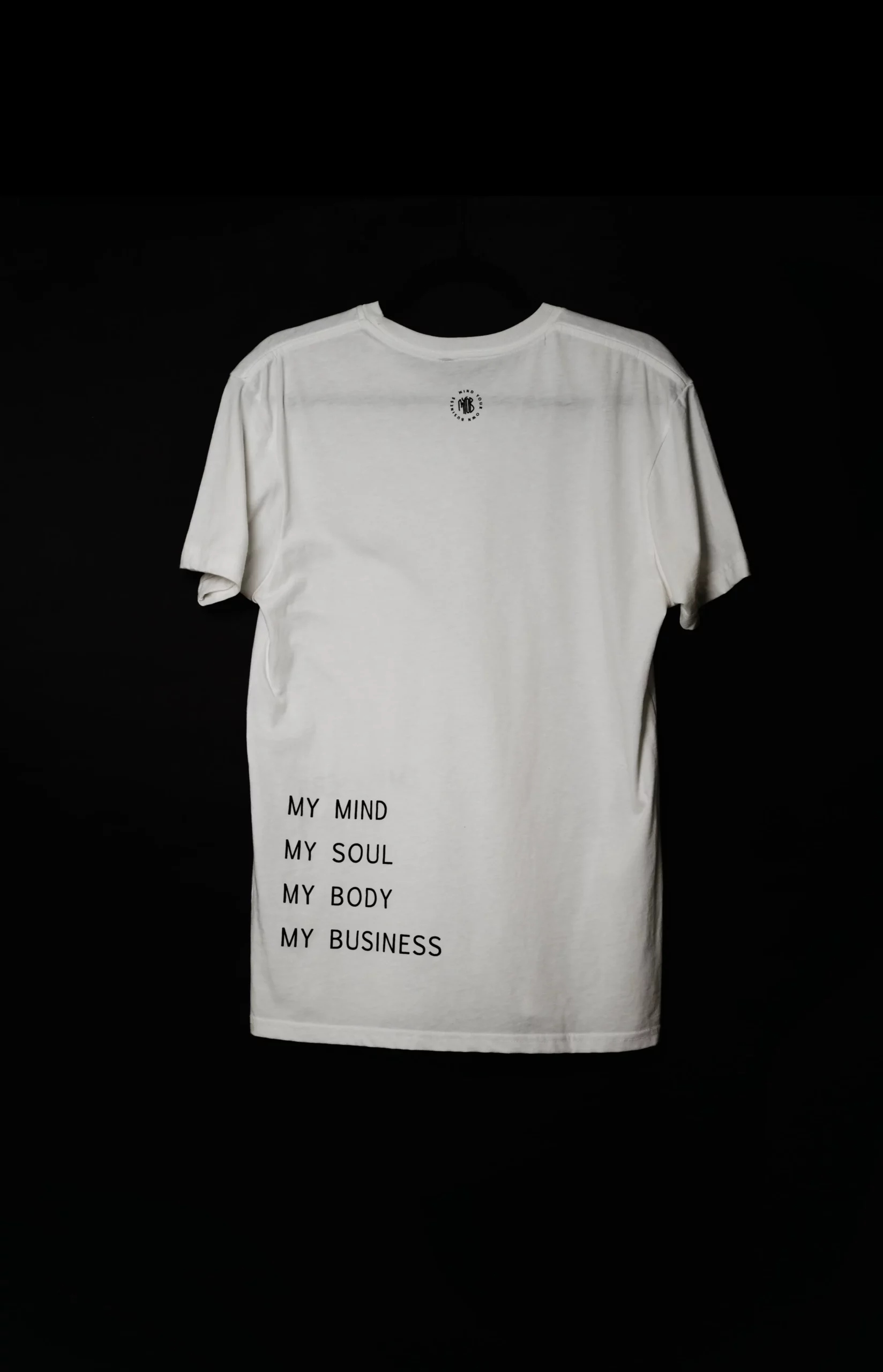 This t-shirt is so much more than just an article of clothing; it’s a manifesto of empowerment and self-discovery. On the front, the words “empowering, growing, feeling, loving” flow in gerund form, embodying a way of life where you’re fully expressing yourself. But there’s more – when you flip the t-shirt, you’ll find a powerful message. “My mind, my soul, my body, my business” emphasizes that each of us has the right and dignity to make our own decisions and live our authentic lives. This phrase also reminds us of the importance of focusing on our own being instead of judging or comparing ourselves to others.
