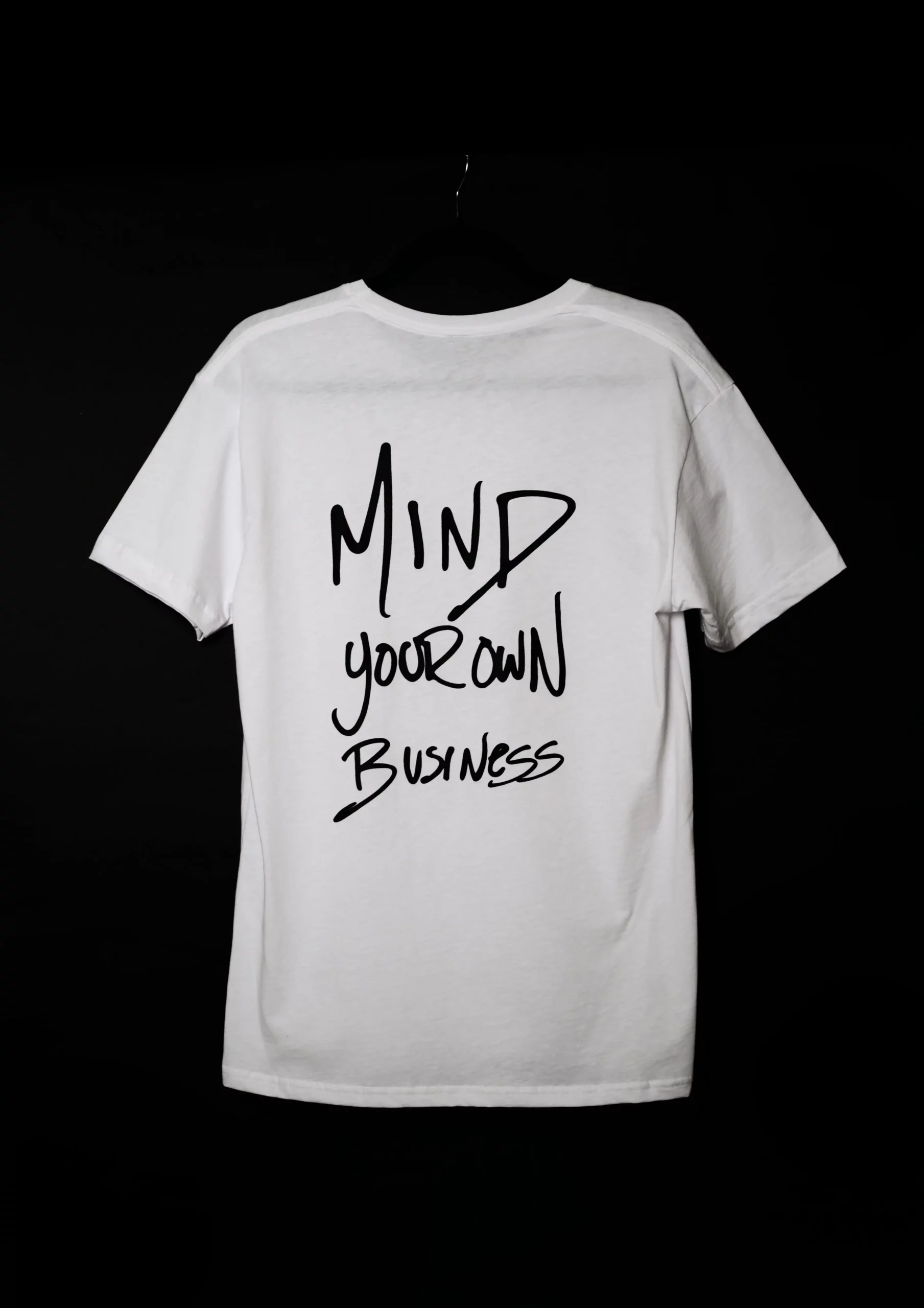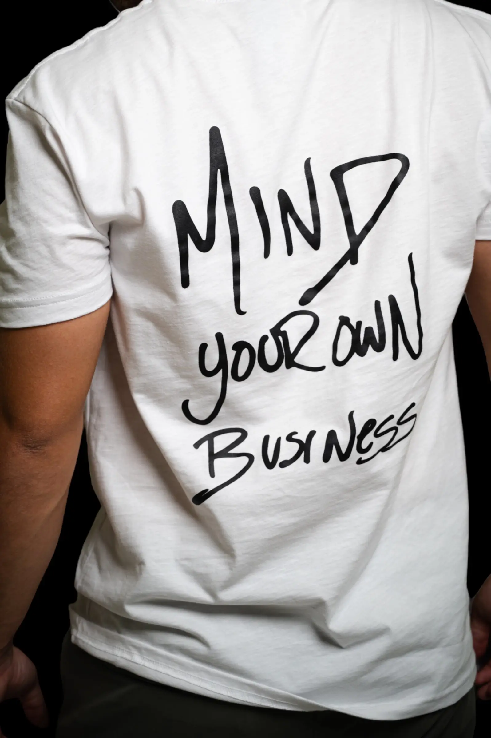 Presenting our unique tee featuring our impactful phrase “Mind Your Own Business” boldly showcased on the back with a philosophy of harnessing our energy to magnify our strengths and channel it towards refining our areas of growth. “Mind Your Own Business” serves as a reminder to focus on our own journey, strengths, and potential. It’s a call to redirect our energy away from distractions and comparisons, and towards self-improvement and personal growth. By wearing this tee, you’re not only making a statement, but you’re embracing a mindset that encourages self-awareness and self-development.